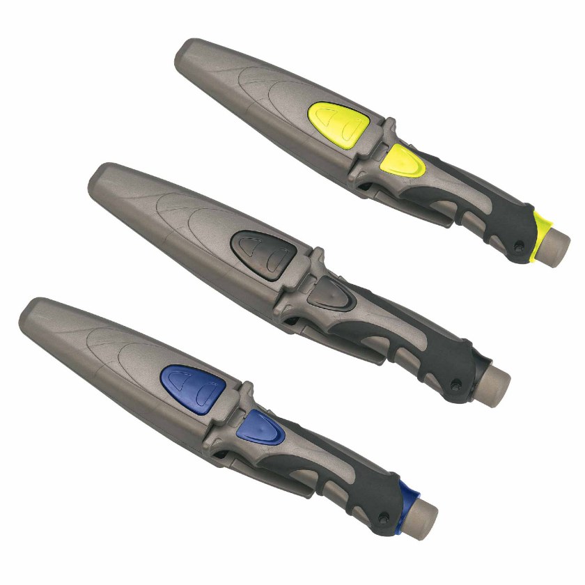 • ألوان مقبض السكين تبقى سوداء / فضية رمادية ، ويمكن تغيير زر ضغط الغمد ومشابك المقبض بثلاثة ألوان مختلفة لاختيار الغواصين.